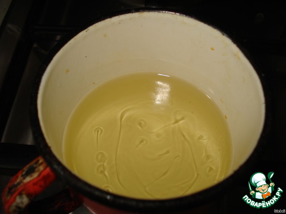 После ставим разогреваться масло. Поскольку я делала только одну порцию, то мне хватило и металлической чашечки.