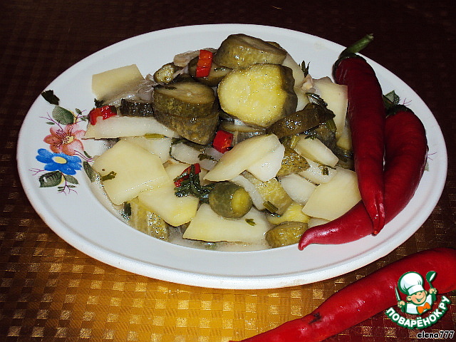 Вот уже и осень наступила, пустеют грядки.. На плетях ещe теплятся огурчики и кабачки... Хочу предложить вам необычный пикантный, остренький, с кавказской ноткой салат на зиму из огурцов, кабачков и... дыни... Без стерилизации, легко и просто! И хранится замечательно! Интересно? Тогда загляните на огонeк!