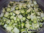 Как только огурцы начнут менять цвет, добавить чеснок, нарезанный тонкими пластиночками, перемешать и варить ещё минут 10.