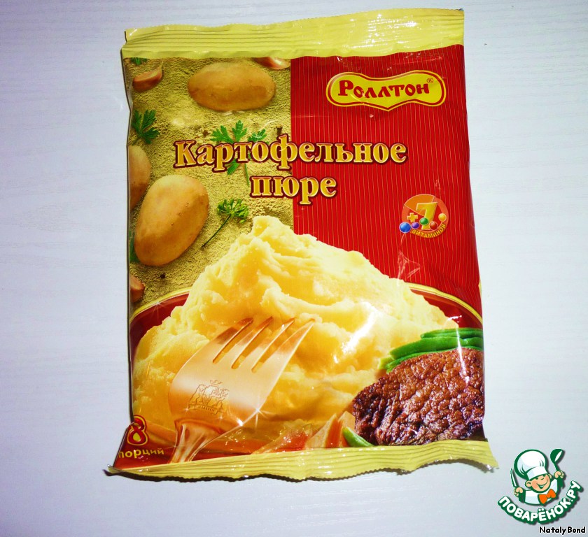 - Пюре картофельное (быстрорастворимое) — 1 пакет.
