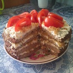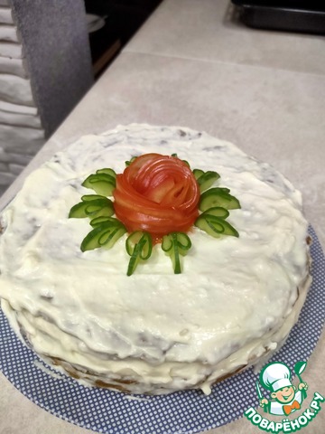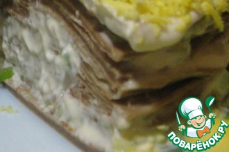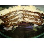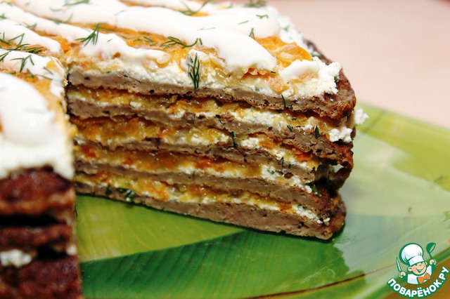 Печеночных тортов на этом сайте, наверняка, сотни, поэтому я просто хочу предложить вам и мой вариант блюда. Торт готовится с тем же творожным кремом, что и в закусочном торте. Неожиданные гости были в восторге )))