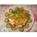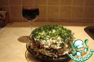 А сверху кладем готовые овощи со сковородки, предварительно чуть охладив их.