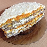 Ставим тортик хотя бы на час в холодильник, чтобы он немного пропитался кремом. А потом с удовольствием поглощаем! ))