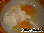 Яйца взбить венчиком с солью и сахаром, добавить сметану,