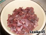 Срезаем лишний жир и нарезаем небольшими кусочками...