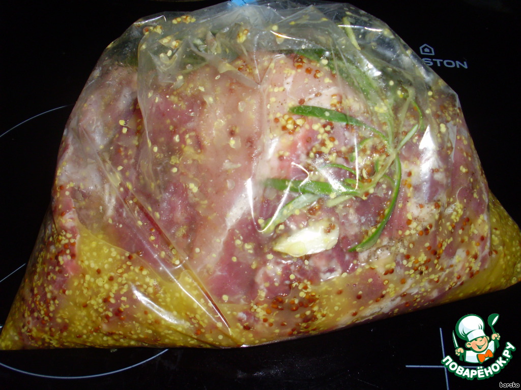 • Залить мясо маринадом, завязать мешок и поместить на ночь в холодильник.