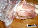 Залить мясо маринадом, завязать мешок и поместить на ночь в холодильник.