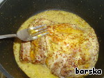 Добавить маринад к мясу, смазать мясо апельсиновым мармеладом (можно заменить на абрикосовое варенье или мёд) и тушить под крышкой на медленном огне приблизительно 1,5 часа.