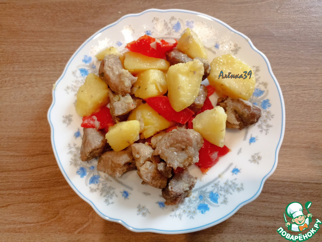 Добавляем картофель, болгарский перец и тушим в течение еще 10 минут.