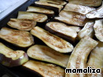 Выделившийся сок слить. Баклажаны выложить на смазанный маслом протвень и побрызгать сверху маслом. Запечь в духовке около 20 минут.