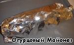 Заворачиваем в фольгу, плотно зажав края. Ставим в разогретую до 150 градусов духовку на 40-50 минут.