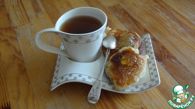 В результате - мгновенный полдник с пылу, с жару, со сливово-шоколадным вареньем и сметанкой!