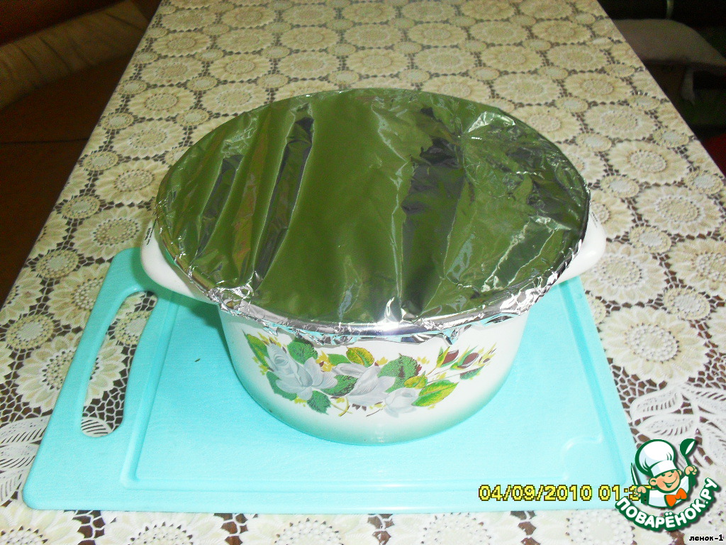 форму закрыть фольгой и поставить в разогретую до 150 град. духовку,