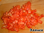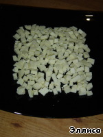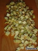 Баклажаны очищаем, нарезаем кубиками и обжариваем на оливковом масле.