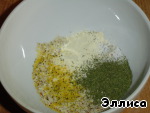 к нему добавляем чеснок, лук, укроп, соль, лимонный перец,