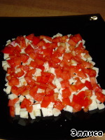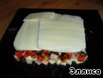 Оставшуюся брынзу нарезаем пластинками и накрываем салат.