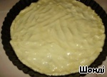 Тесто разделить на 3 части, первую часть с помощью рук распределить в форме, предварительно смазанной растительным маслом.