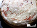 Охлажденные коржи прослаиваем кремом, оформляем по желанию (я использовала сироп клубники в качестве рисунка).