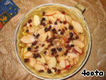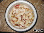 Пока тесто «думает», готовим начинку, для чего моем и чистим яблоки (хороши семеренко и лигольд, а вообще, это дело вкуса), режем их пластинками, можно воспользоваться специальной теркой. Промываем и заливаем теплой водой изюм, изюм можно настоять на роме или коньяке, если не любите изюм, можно обойтись без него или заменить его вишней или цукатами, кому что нравится.