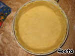 Тесто делим на две неравные части 2/3 и 1/3, 2/3 раскатываем и выкладываем в форму. Форма может быть любая: силиконовая, разъемная, я, как видите, использую обычную сковороду. Чтобы у пирога был тонкий край «без начинки», а сам пирог повыше, при раскатке делаем потоньше края, а середину оставляем потолще.
