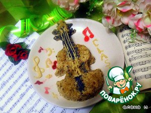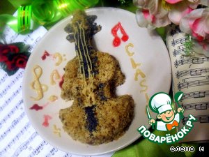 Достаём слегка застывшую массу из холодильника, выкладываем на блюдо, формируем в виде скрипки.