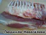 Мясо очистить от жира и сухожилий, вырезать между ребрышками