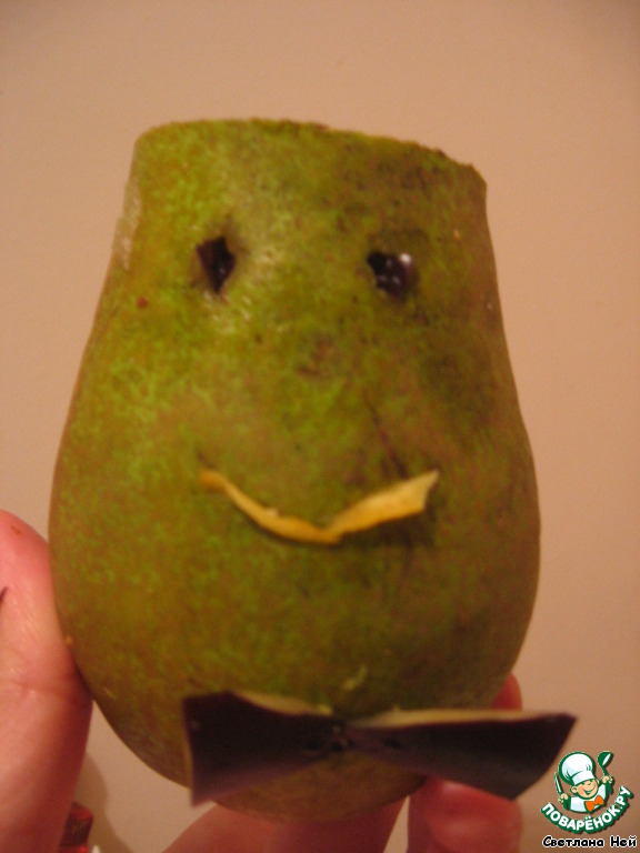 Моем груши, срезаем шляпки и вынимаем мякоть. Но мякоть у груш вынимаем с разных сторон. Чтобы у нас получились "мальчик" и "девочка".