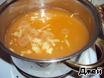Оставшийся сок из-под капусты сливаю в кастрюлю и потом уже (если надо) доливаю воды: делаем маринад, снимая пену...