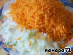На дно горшочка выложить луково-морковную смесь, фасоль