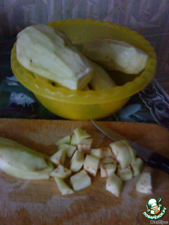 Баклажаны почистить, помыть, нарезать кубиками.