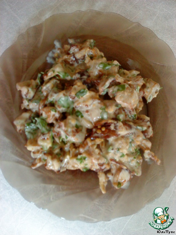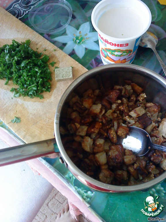 Добавить майонез, измельченную петрушку и бульонный кубик Maggi (грибной). Постарайтесь именно Maggi(грибной). Я делала с другими кубиками - не то.