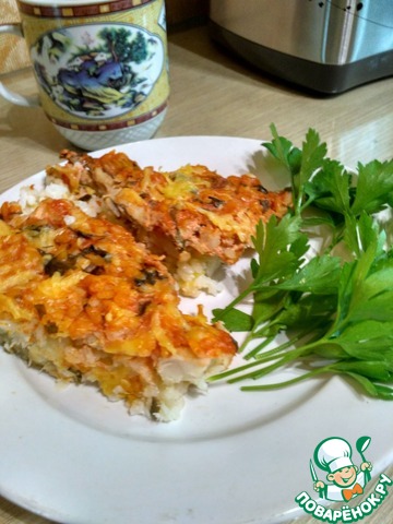 Сырный рис с рыбной прослойкой. Вкусная запеканка для приготовления в аэрогриле :)