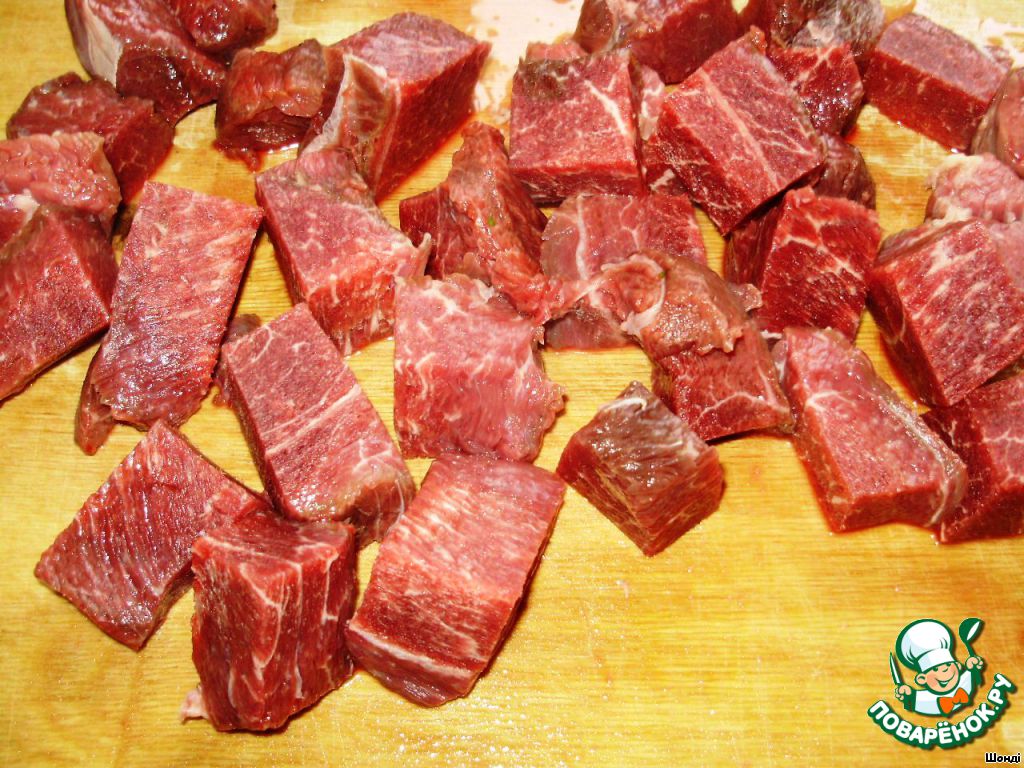 Рецепт «Запеченная говядина со свежими овощами и ореховым соусом «Школьная пора»»: