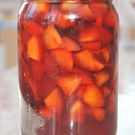 Так как слива у меня была очень сочная, образовалось много сиропа, и, чтобы варенье не закисло, я добавила консерват за 5 мин. до готовности.