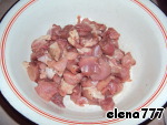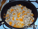 Лук порезать соломкой, морковь - кружочками. Мясо выложить на сковороду с растительным маслом, слегка припустить, добавить лук и морковь, обжарить.