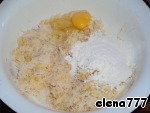 Готовим картофельное тесто (у меня был картофель не крупный - с куриное яйцо, на тесто ушло штук 10-11): натереть сырой картофель на мелкой тёрке, хорошо отжать сок, посолить, поперчить, добавить яйцо, выдавленный чеснок, муку, хорошо перемешать.