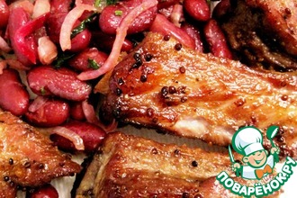 Вытаскиваем мясо из духовки, даем немного остыть и удаляем фольгу. Подаем к столу с поджаренными и свежими овощами. На гарнир отлично подойдет рис. Угощайтесь!