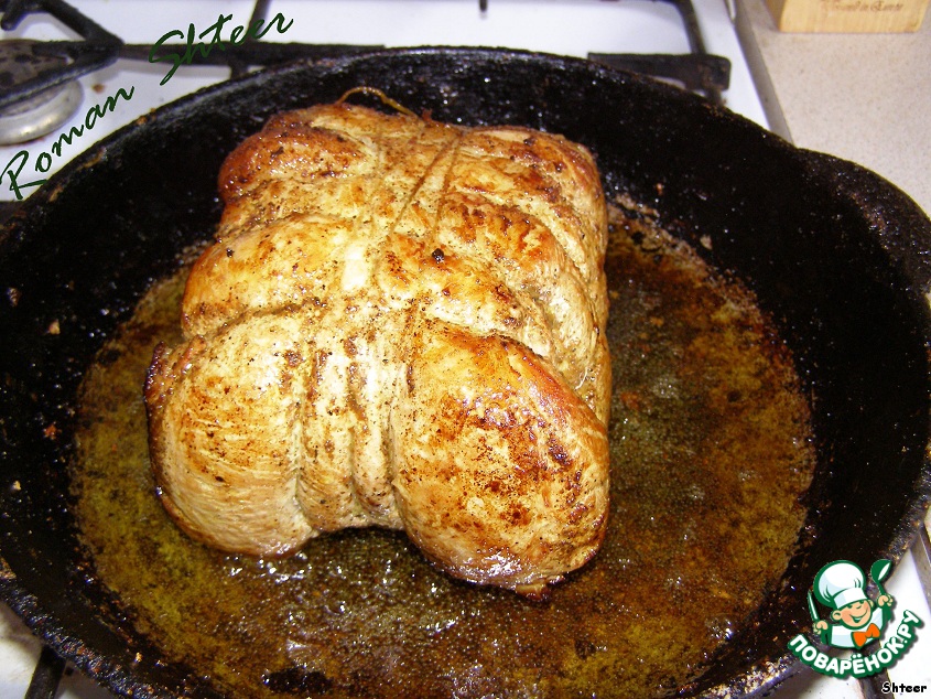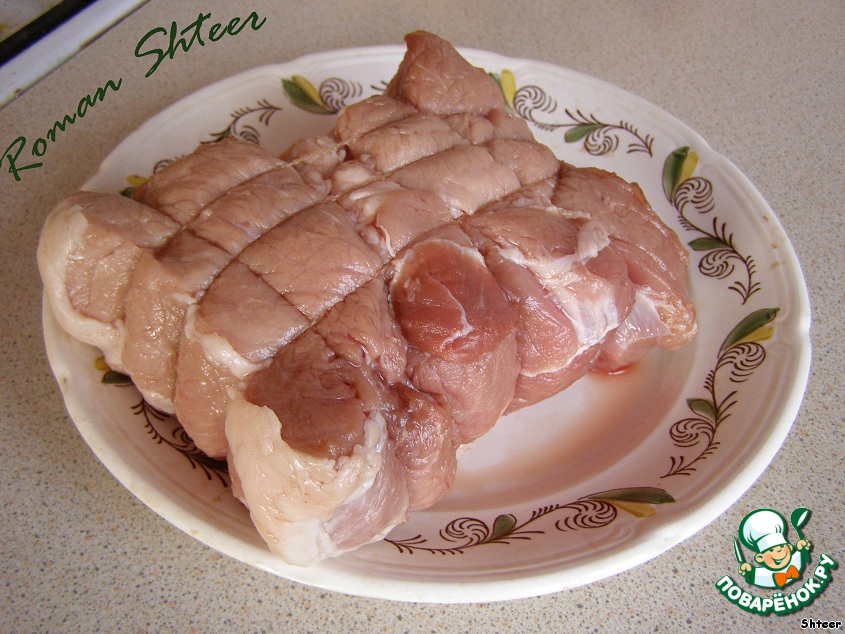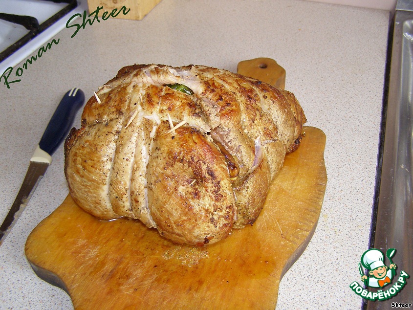 С остывшего мяса удаляем веревочки. Делаем надрез, как бы имитируя крышку сумки.