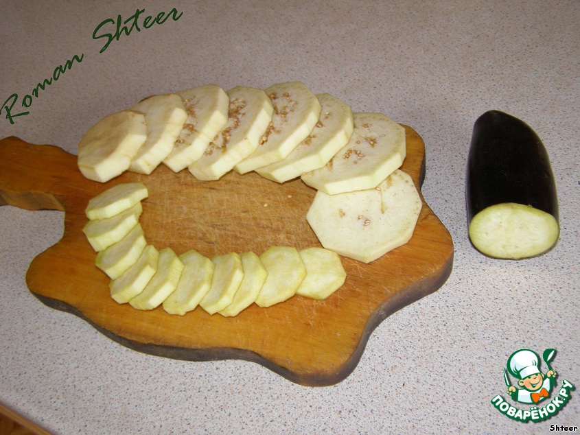 Чистим и нарезаем кружочками толщиной 1 см баклажан.