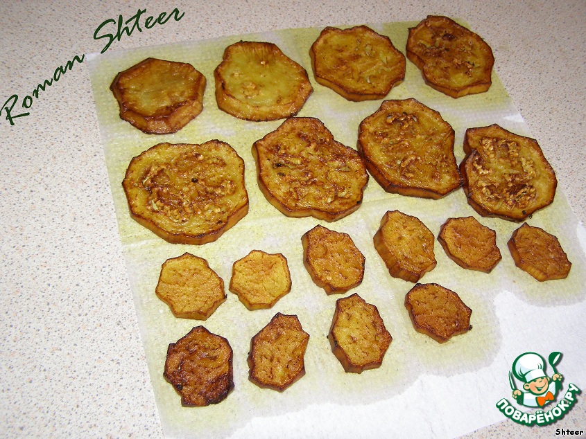 Обжариваем на растительном масле баклажаны. Выкладываем их на бумажное полотенце, чтобы удалить лишнее масло.