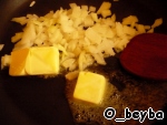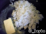 Заправка: в сковороду кладем масло (50гр) и лук. -
