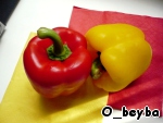 Если перец крупный, то порежьте половину красного и половину желтого.