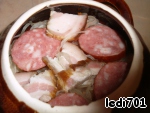 Чудесный горшочек! Сочетание квашеной капусты, мяса и колбасок - классика кулинарии. Удачи!+++