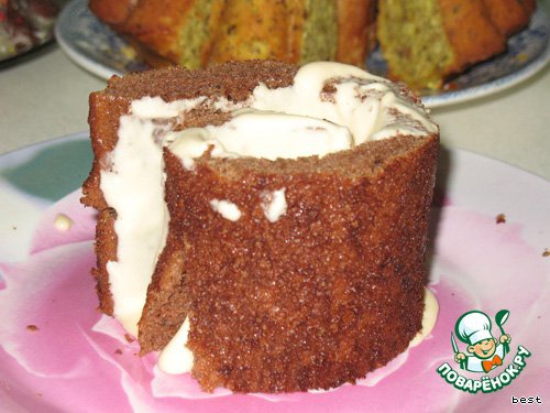 (Это уже последний потому не очень получился. Но разрез интересный получается и торт очень сочный).