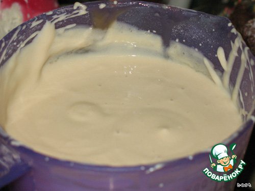 сметану смешиваем со сгущенкой и добавляем загуститель, взбивая миксером. -