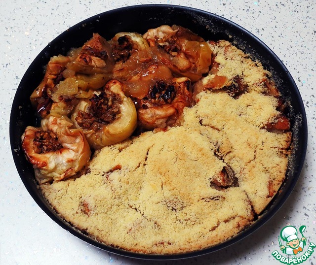 4. На яблоки сверху равномерно выложить крошку из теста.
