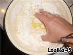 Маргарин посечь с просеянной мукой, содой лимонной кислотой...