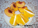 Персик и очищенный от кожуры апельсин разрезать на 4 части, удалив косточки. Один кусочек апельсина убираем для заправки.