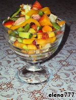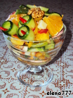 Этот яркий, очень сочный салат-коктейль порадует своей потрясающей кулинарной гаммой вкусов вас и ваших гостей! Острый, пикантный, необычный, с кричащим буйством красок этот салат завораживает, как неизменный, но страстно волнующий, темпераментный рок! Для этого замечательного блюда я подобрала необычные ингредиенты, а когда я его приготовила и попробовала, то не могла оторваться... спасибо старшей дочке - она просто вырвала у меня из рук бокал с этим великолепием! (а то я бы скушала всe и никому не оставила!) Милости прошу к столу! На конкурс "Кулинарная гамма вкусов".