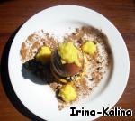 Запеченную грушу поставить на апельсиново-ореховый "пъедестал", обильно залить апельсиновым пюре и украсить орехами.